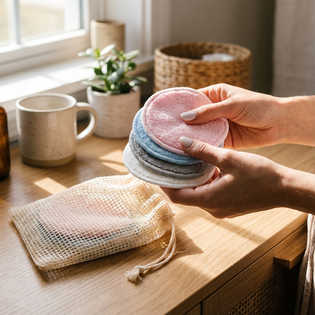 Emma begins her morning with gentle, reusable soft pads on her skin and kind to the planet. A small switch that instantly feels right.